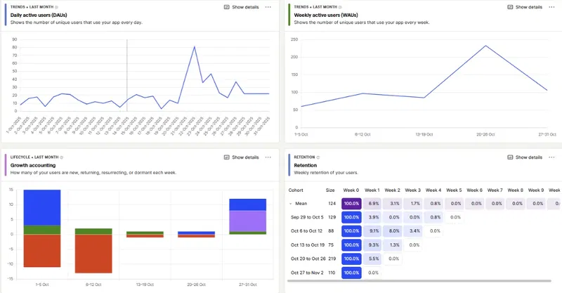 I’m planning to share the evolution of Fika’s metrics and those of our future projects. We’re using Posthog.